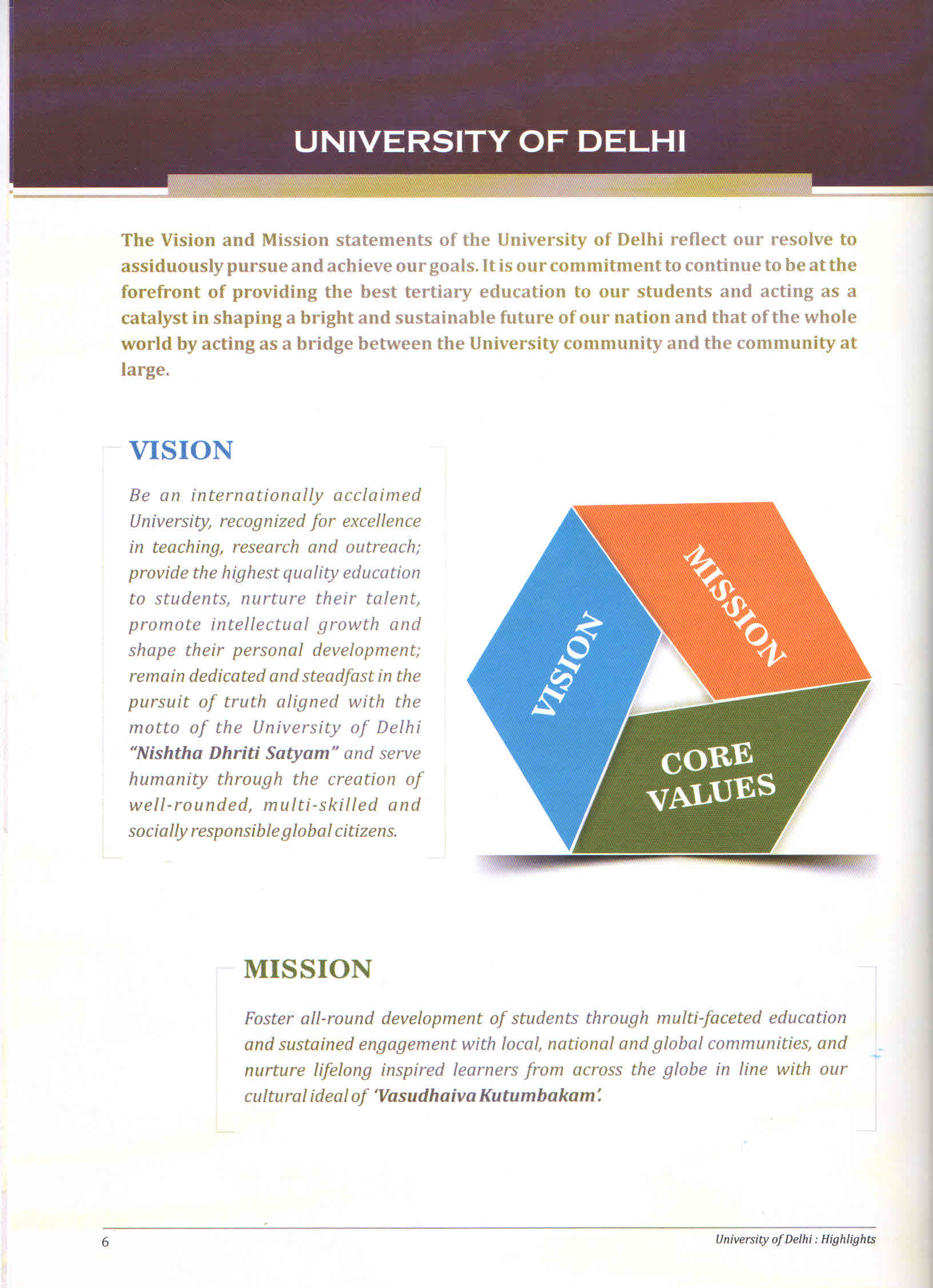 Our Code of Conduct is drawn from the Core Values based on the Vision and Mission statements of the University of Delhi. These are stated below :